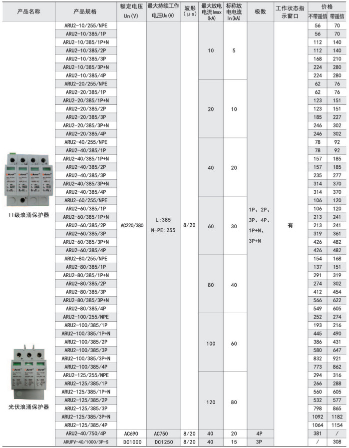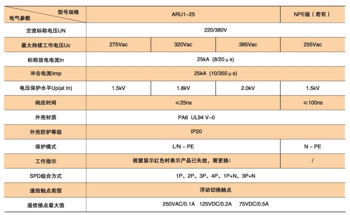 ARU1-25型SPD技術(shù)參數(shù)