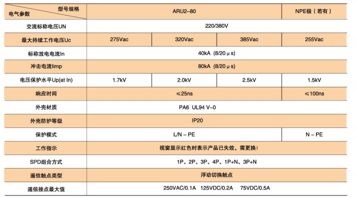 ARU2-80型SPD技術(shù)參數(shù)