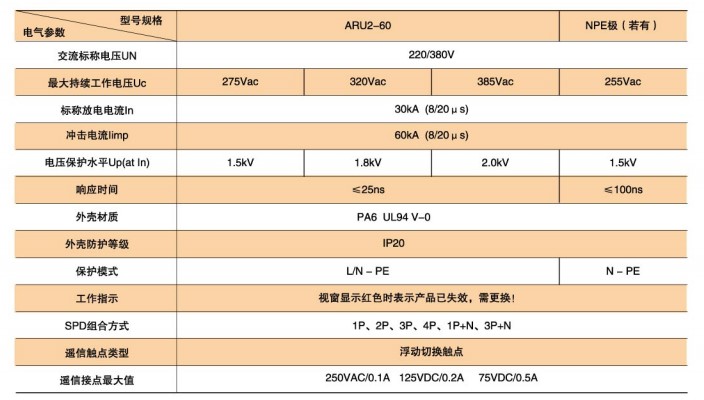 ARU2-60型SPD技術(shù)參數(shù)