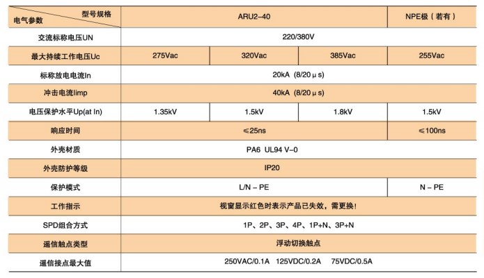 ARU2-40型SPD技術(shù)參數(shù)
