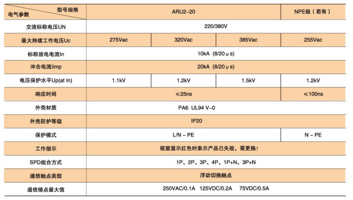 ARU2-20型SPD技術(shù)參數(shù)