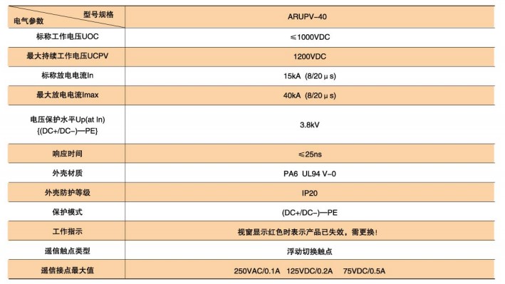 ARUPV-40光伏用SPD技術(shù)參數(shù)