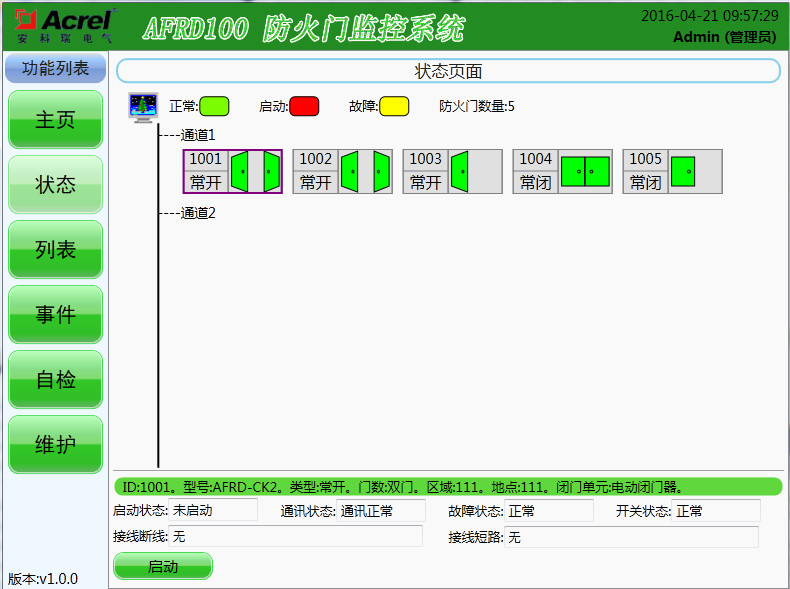 該界面以圖形化顯示方式直觀的展現(xiàn)了被監(jiān)測的防火門的工作狀態(tài),點擊防火門圖標(biāo)后,系統(tǒng)會顯示該防火門的詳細(xì)信息。