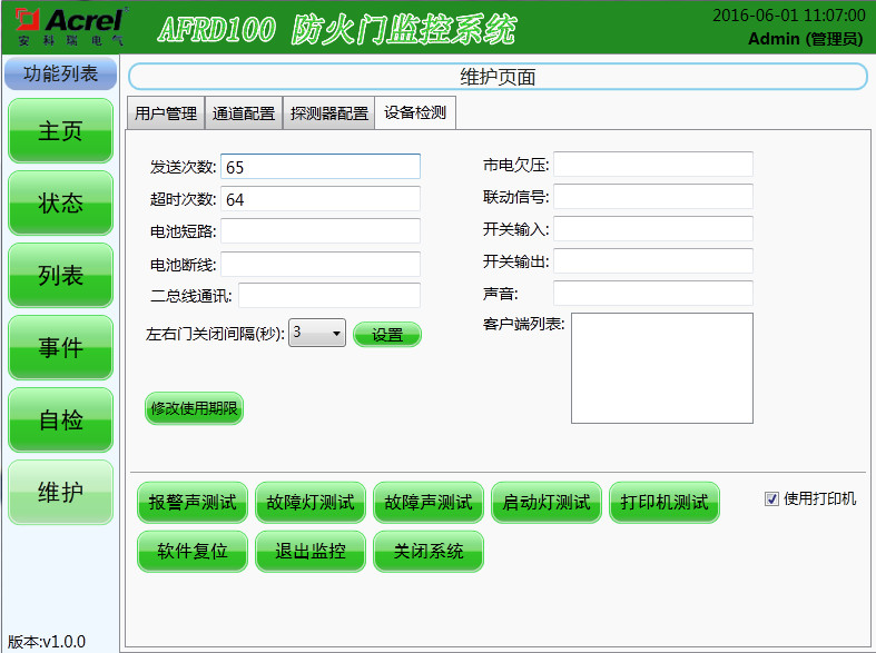 該界面可以直接查看和設(shè)置一些系統(tǒng)運(yùn)行參數(shù),獨(dú)立測試監(jiān)控器部分功能,但只有“管理員”及其以上級別才有操作權(quán)限。